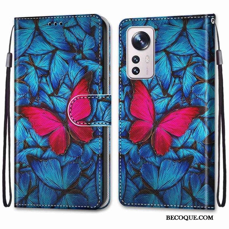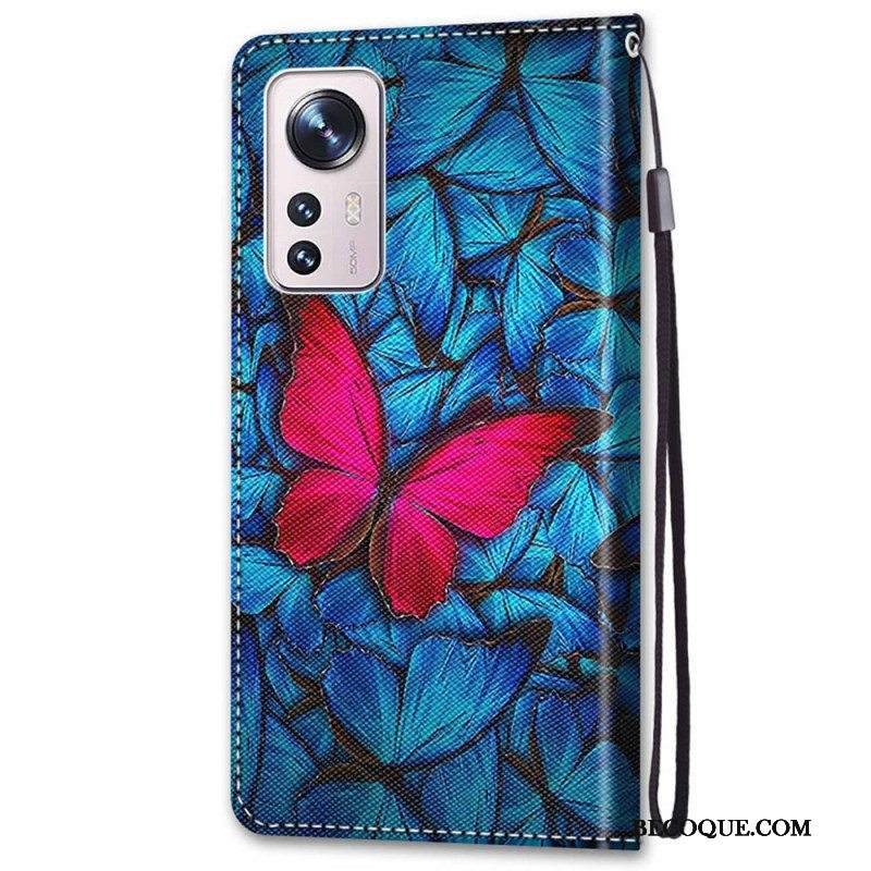 Kotelot Xiaomi 12 / 12X Suojaketju Kuori Punainen Perhonen Hihnalla