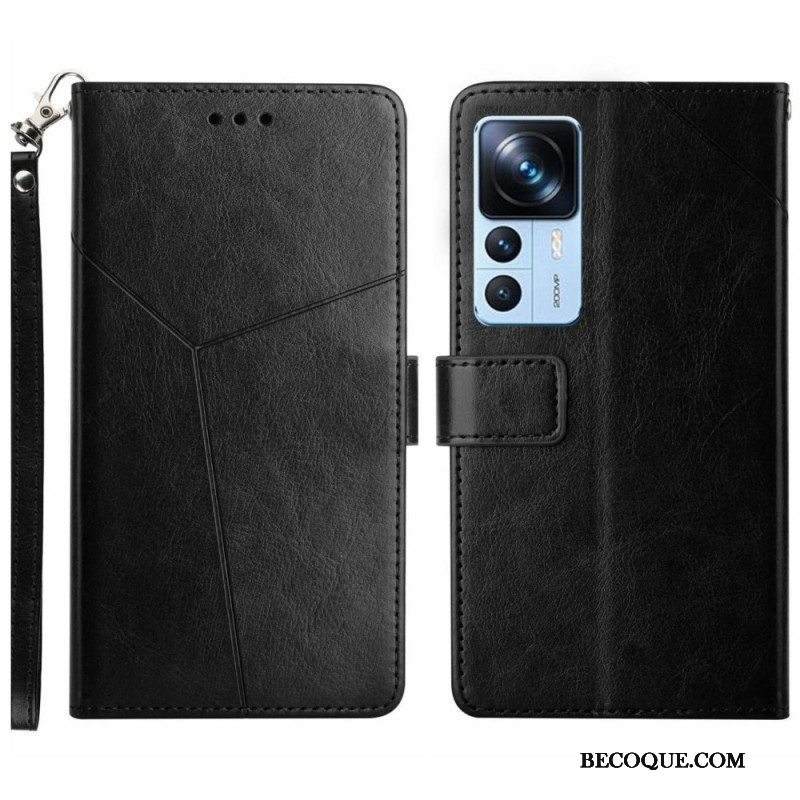 Nahkakotelo Xiaomi 12T / 12T Pro Kukkakuvioita Hihnalla