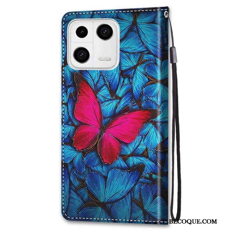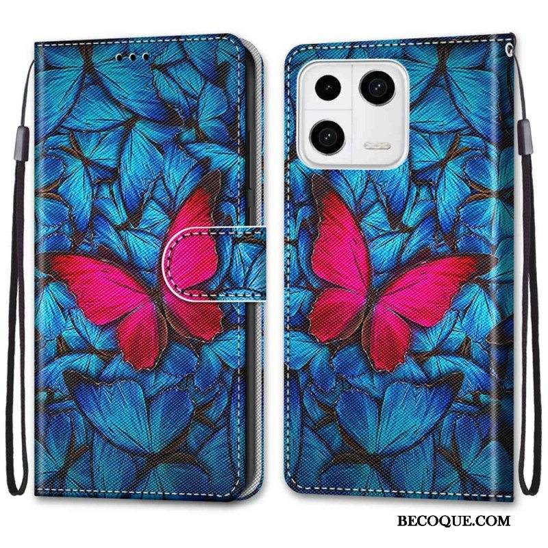 Kotelot Xiaomi 13 Punainen Perhonen Sininen Tausta