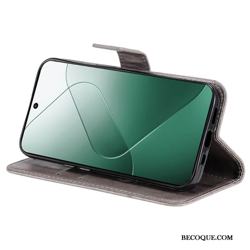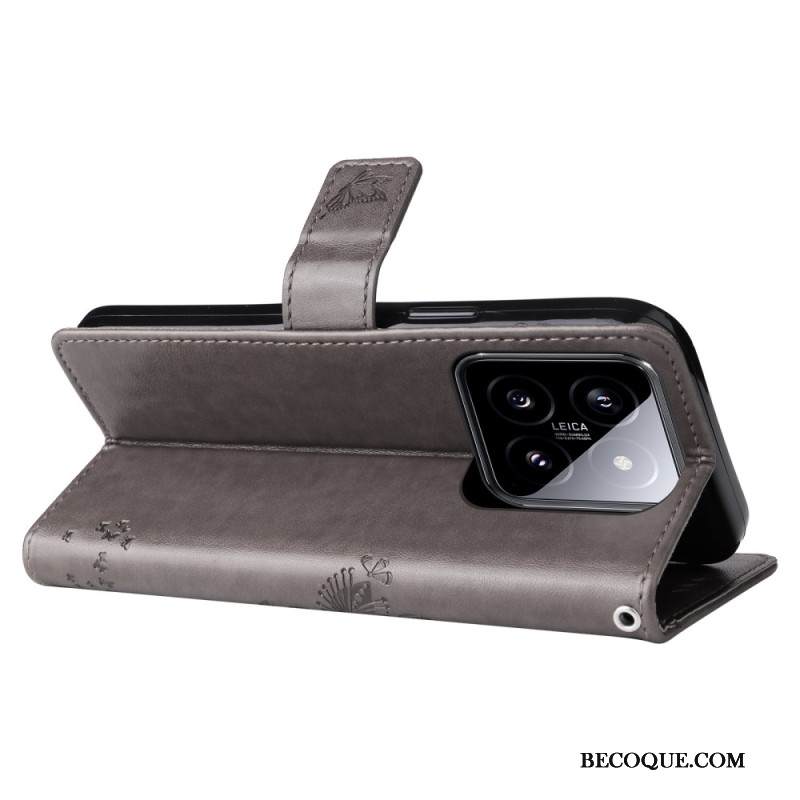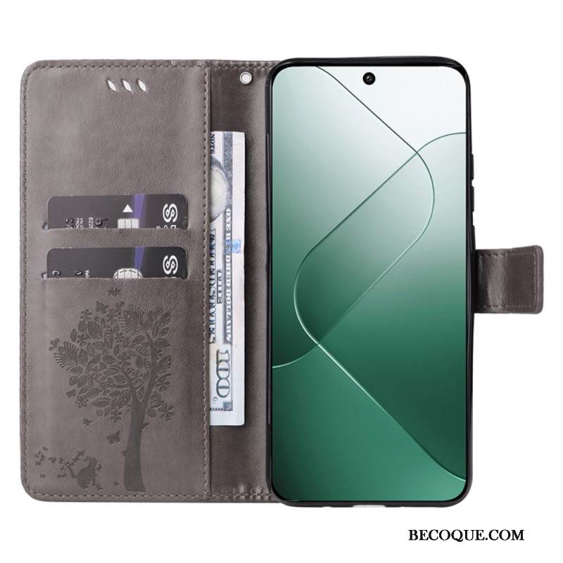 Nahkakotelo Xiaomi 14 Harmaa Kissa Hihnalla