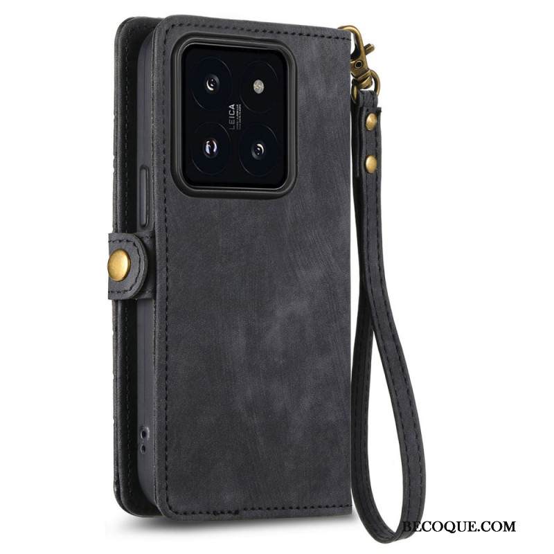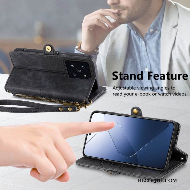 Kotelot Xiaomi 14t Pro Leopardikuvio Hihnalla