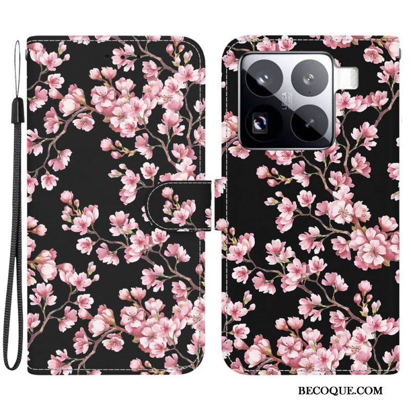 Kotelot Xiaomi 15 Pro Valkoiset Kukat -hihna
