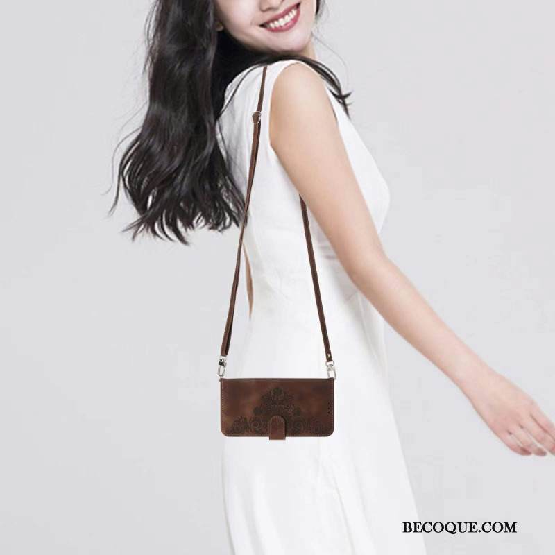 Kotelot Xiaomi 15 Pro Mokkanahkakuvio Kukkakuvio Jossa Hihna Ja Olkahihna Suojakuori