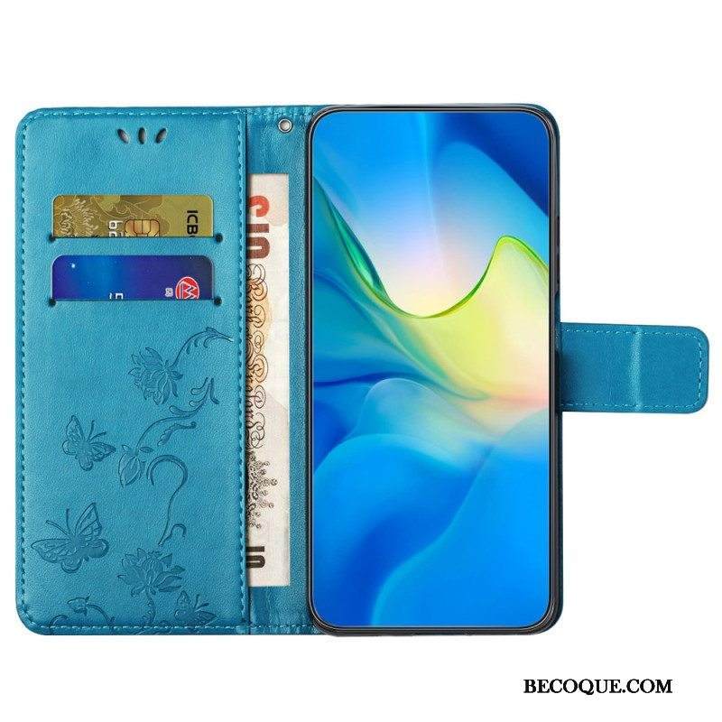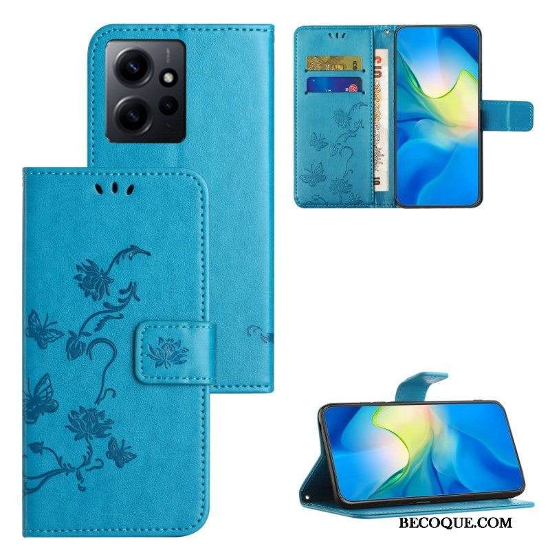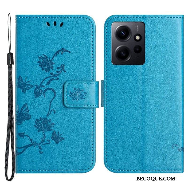 Kotelot Xiaomi Redmi Note 12 4G Suojaketju Kuori Kukkia Ja Perhosia Hihnalla