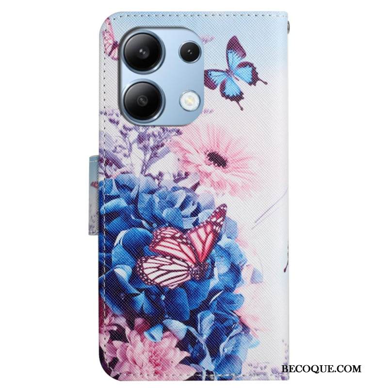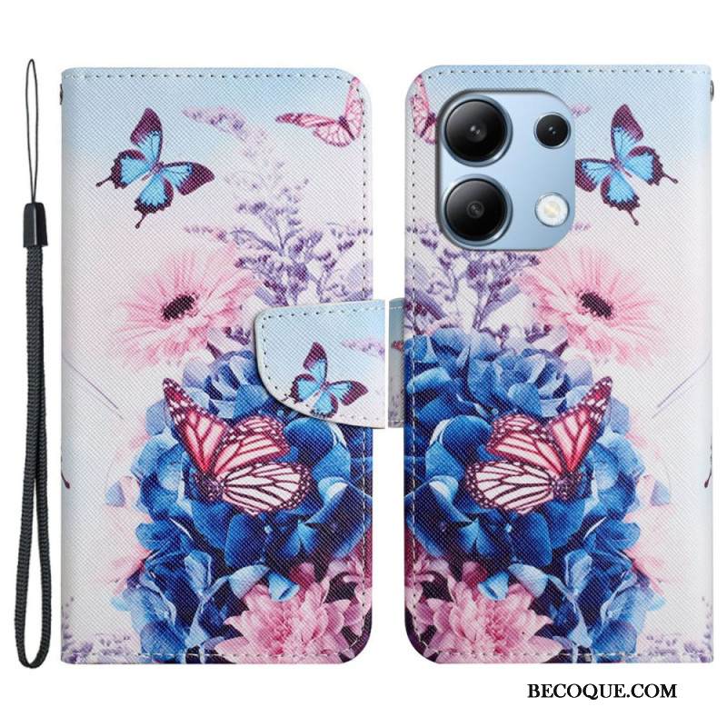 Kotelot Xiaomi Redmi Note 13 4g Purppuranpunaiset Perhoset Hihnalla