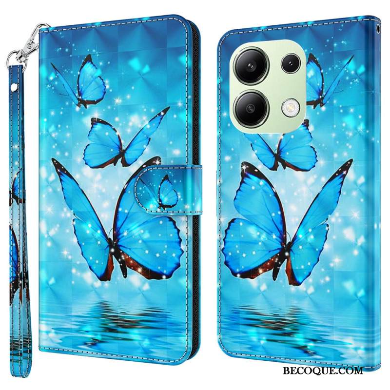 Kotelot Xiaomi Redmi Note 13 4g Siniset Perhoset Hihnalla