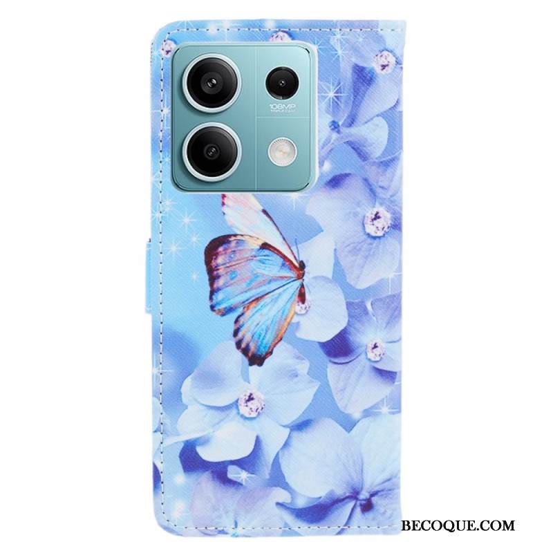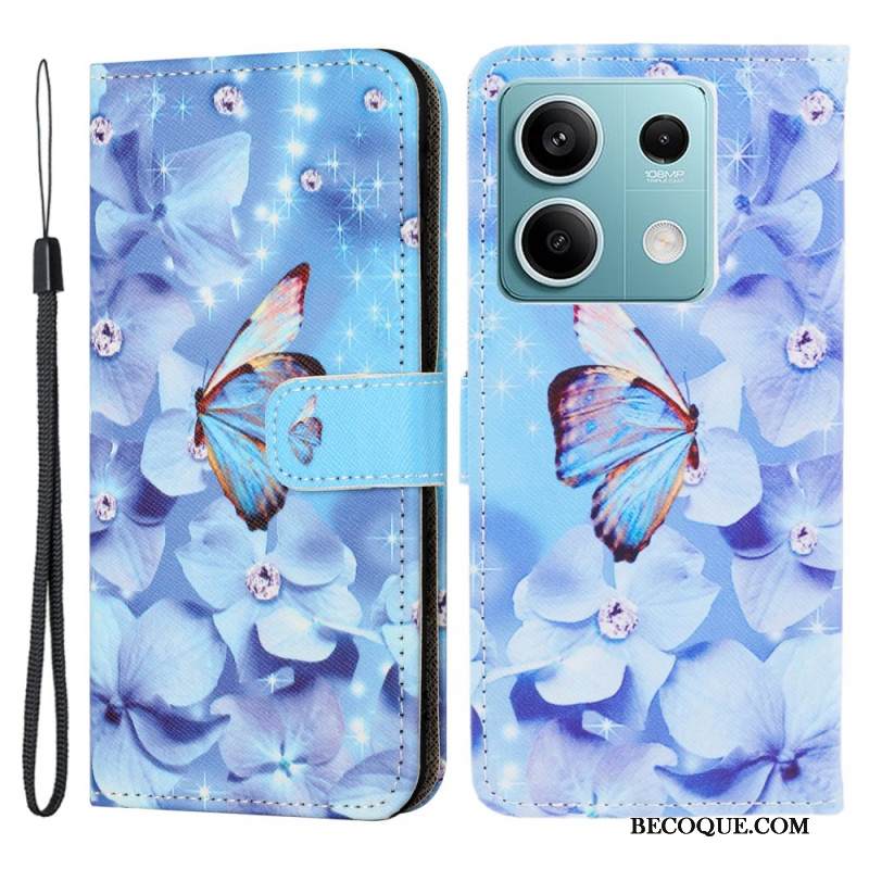 Kotelot Xiaomi Redmi Note 13 5g Puhelinkuoret Siniset Kukat Ja Perhonen Hihnalla