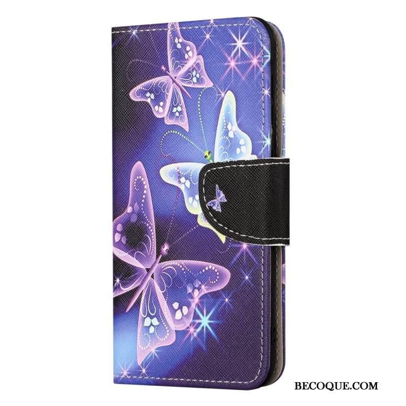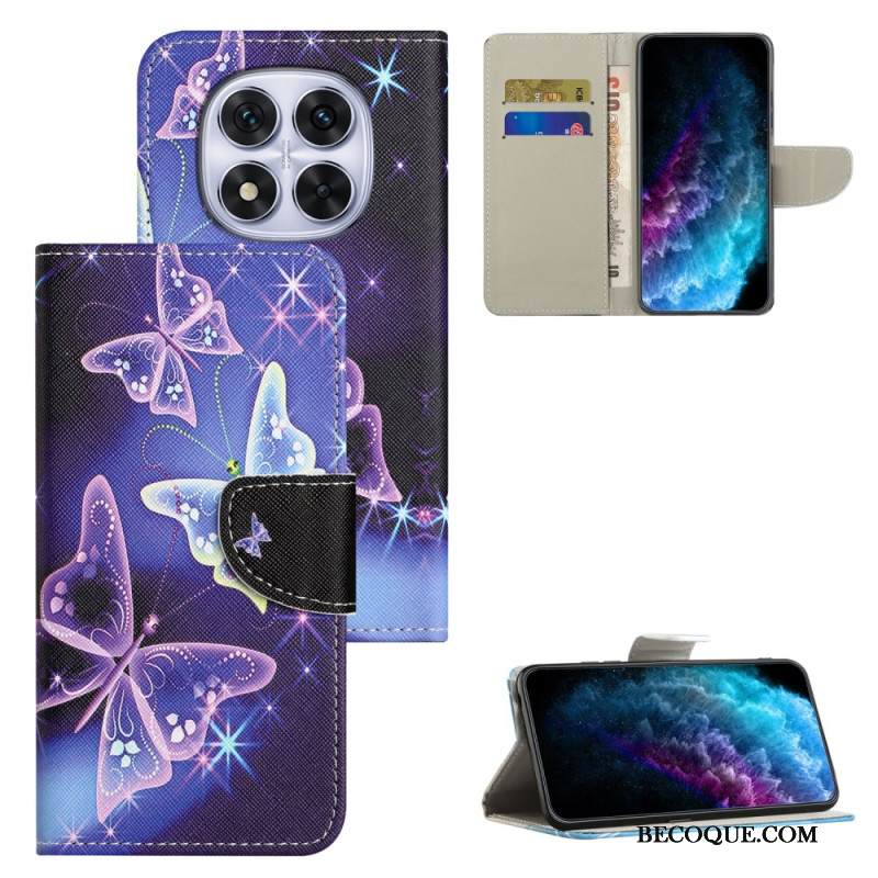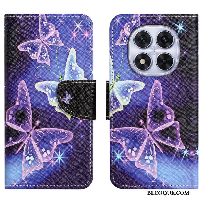 Nahkakotelo Xiaomi Redmi Note 15 Pro 5g Perhosia Mustalla Taustalla