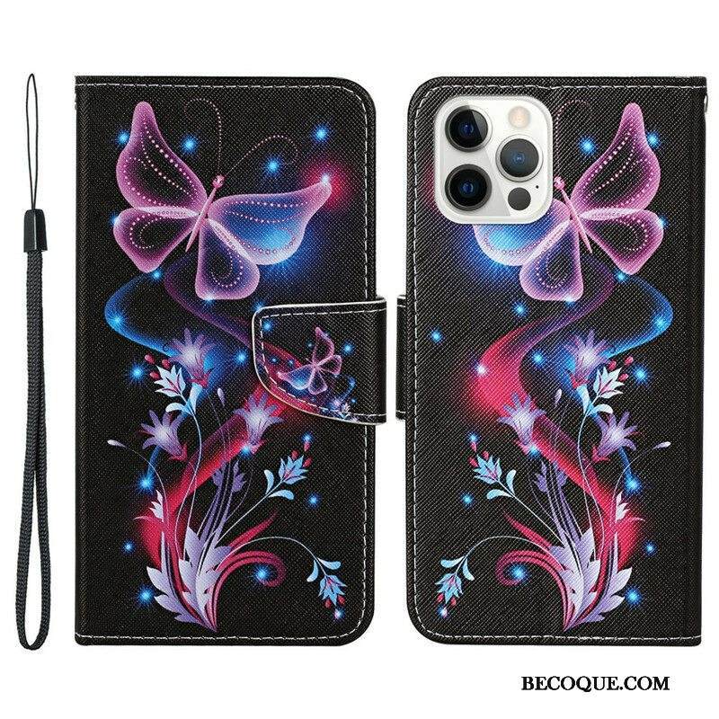 Kotelot iPhone 13 Pro Perhosia Ja Kaulanauhaa