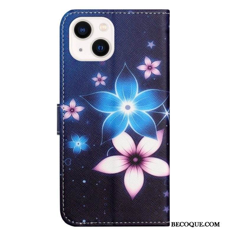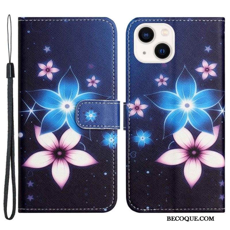 Kotelot iPhone 14 Plus Suojaketju Kuori Kuun Hihnan Kukat