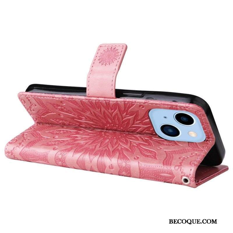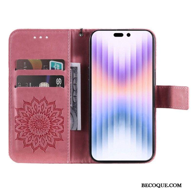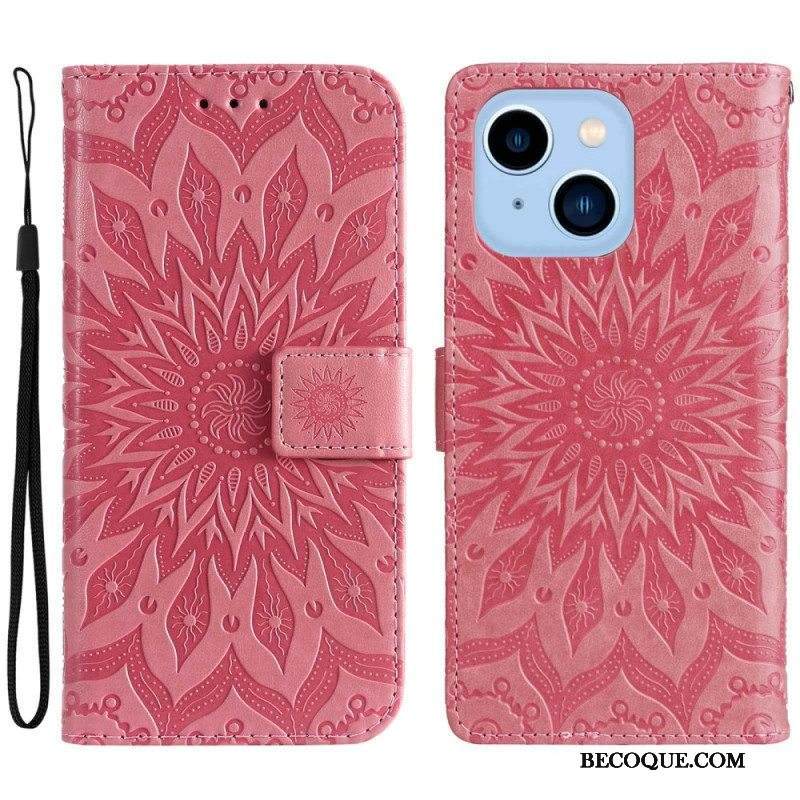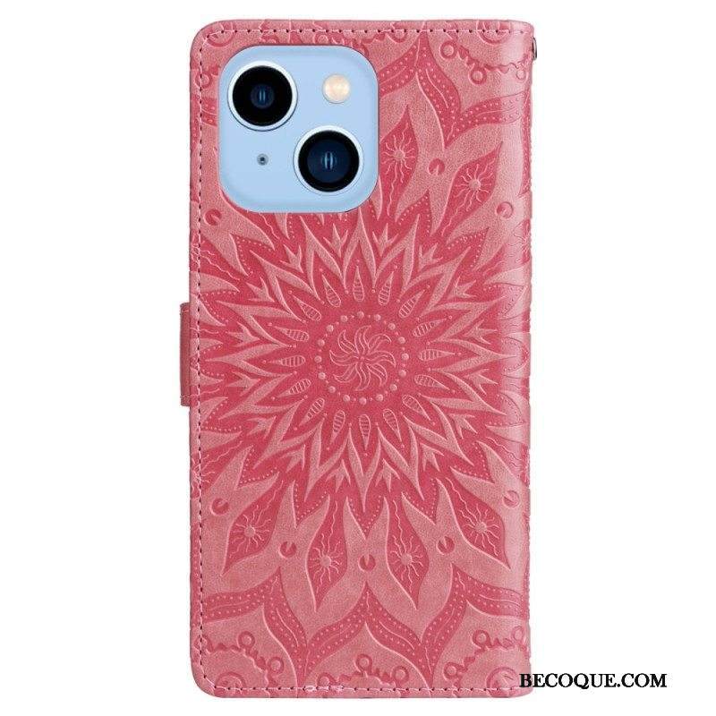 Kotelot iPhone 14 Pro Max Mandala-aurinko Kaulanauhalla