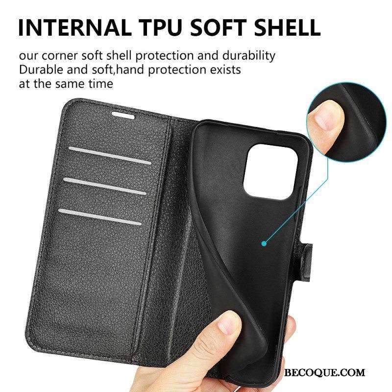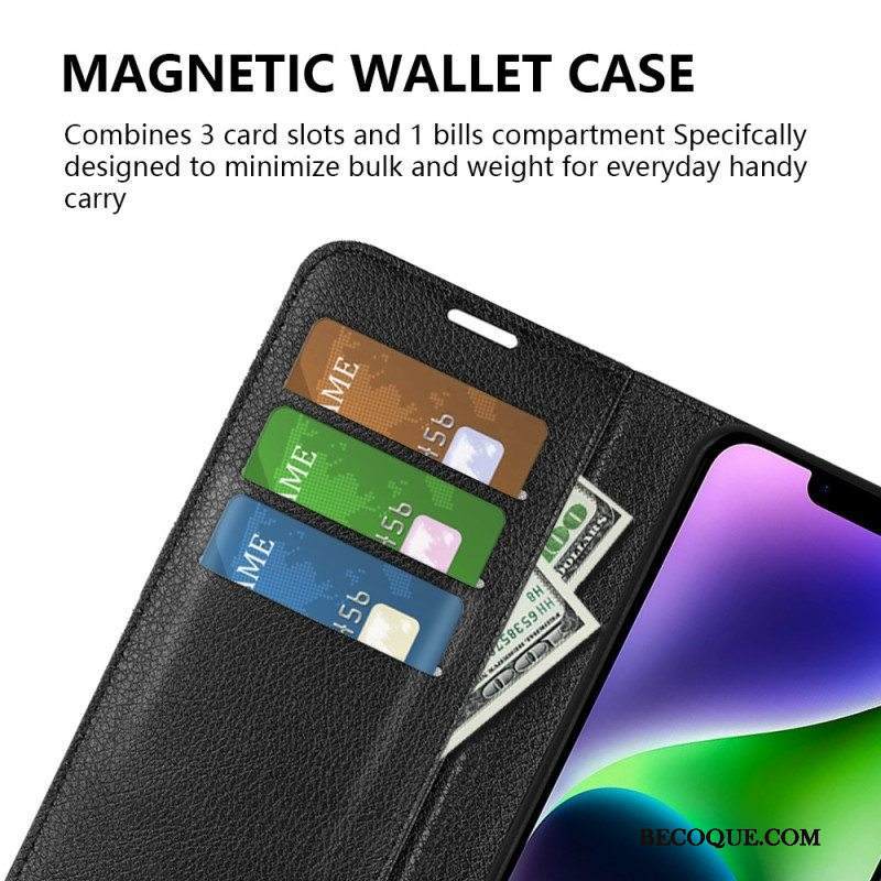 Kotelot iPhone 15 Classic Litchi Faux Leather