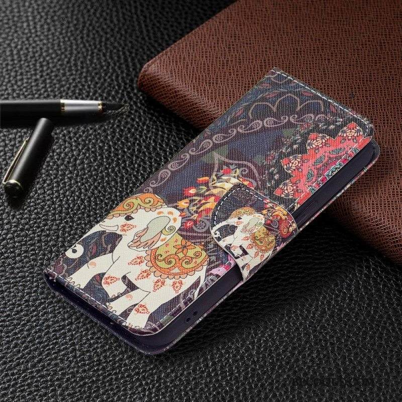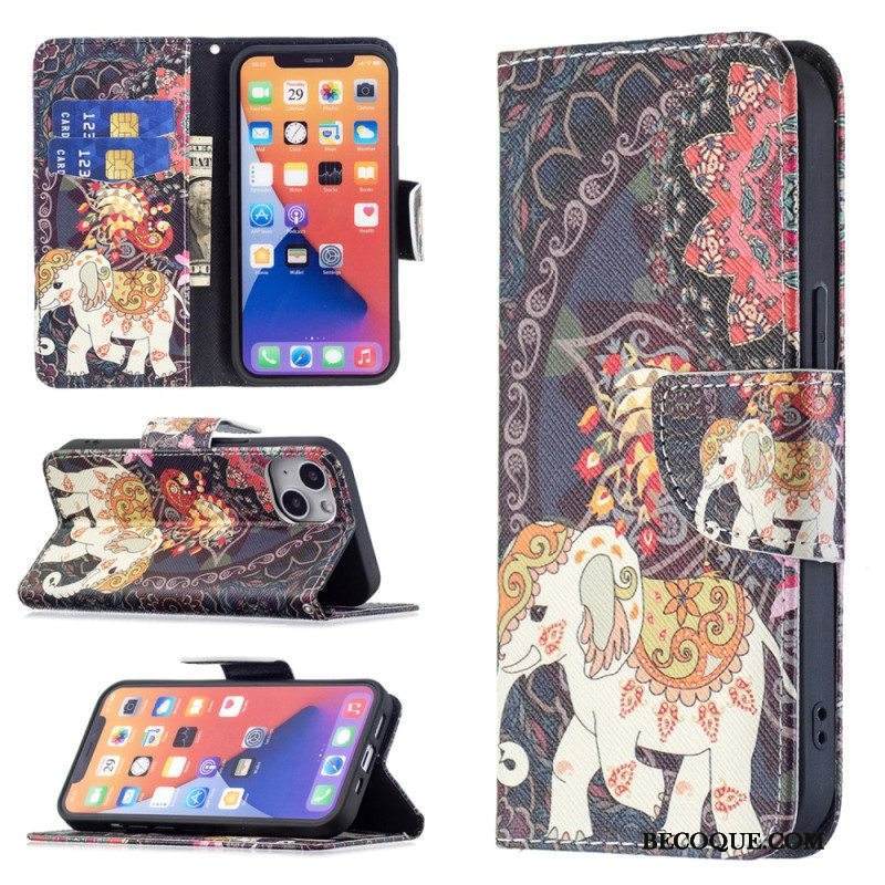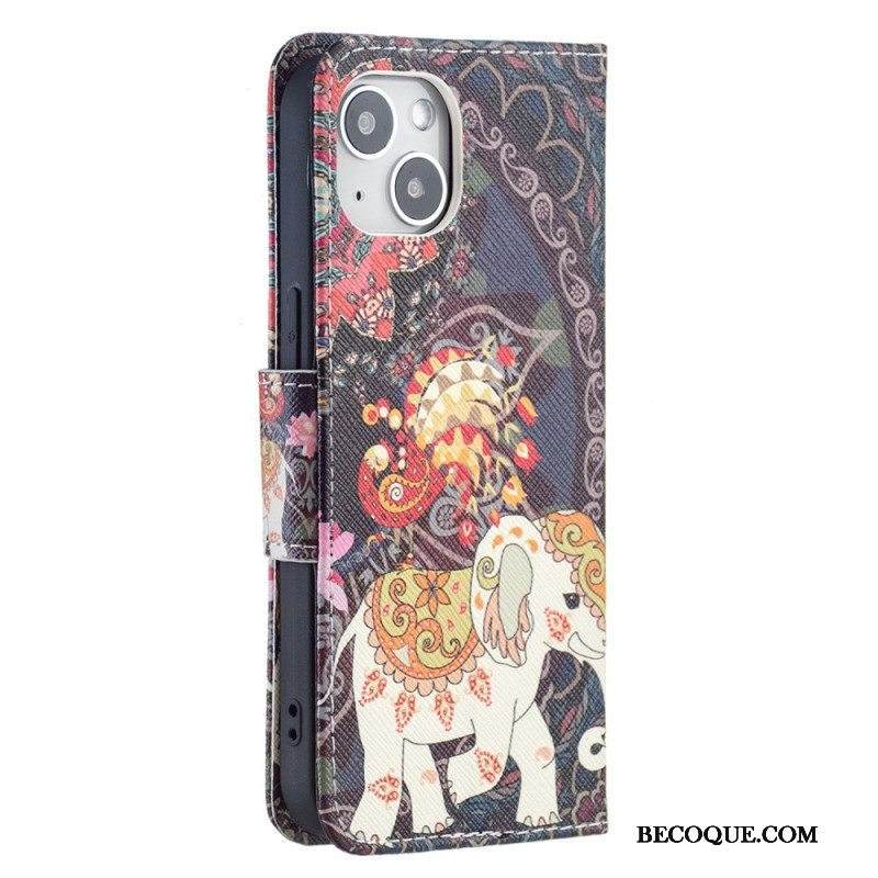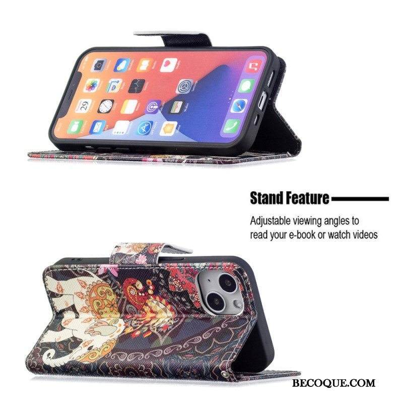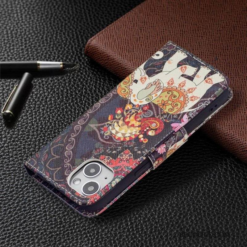 Nahkakotelo iPhone 15 Suojaketju Kuori Kukkamuunnelma Hihnalla