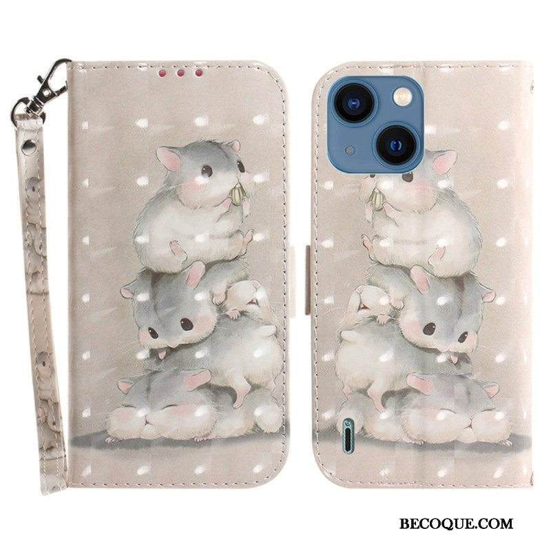 Kotelot iPhone 15 Plus Suojaketju Kuori Hamsterit Hihnalla