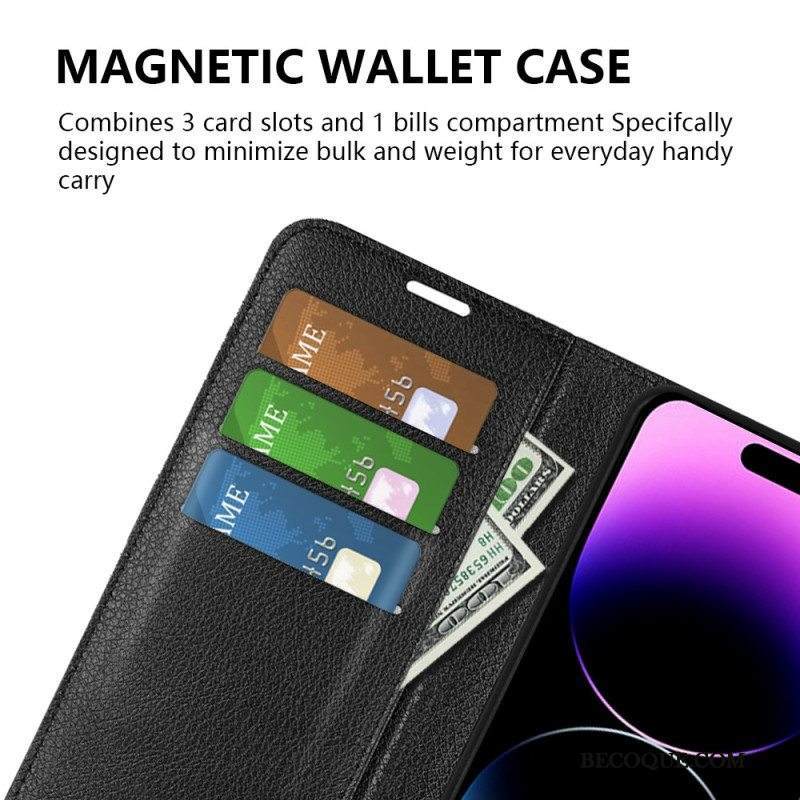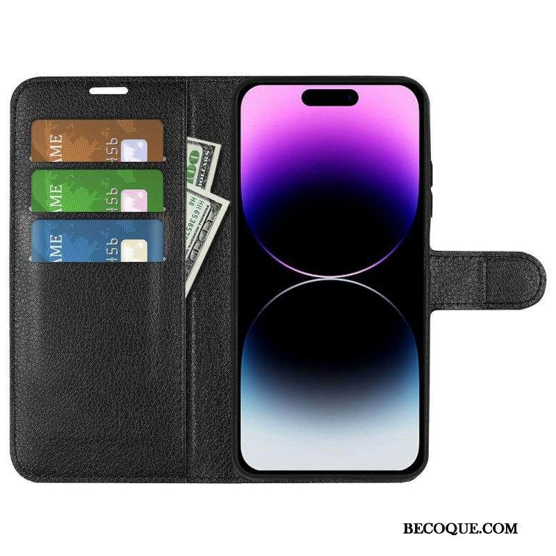 Kotelot iPhone 15 Pro Max Classic Litchi Faux Leather