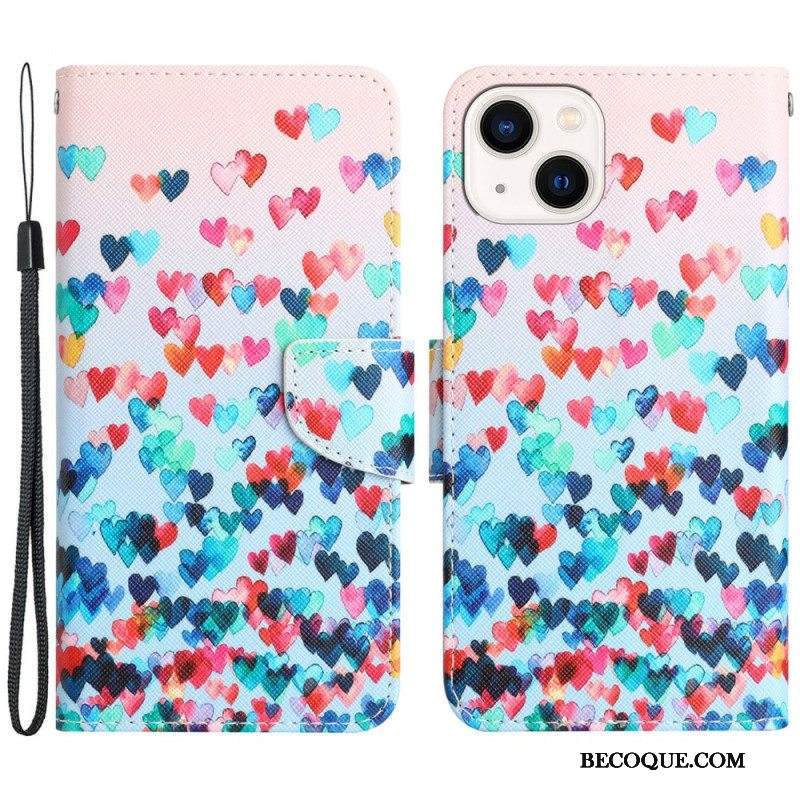 Kotelot iPhone 15 Suojaketju Kuori Rain Of Hearts Hihnalla