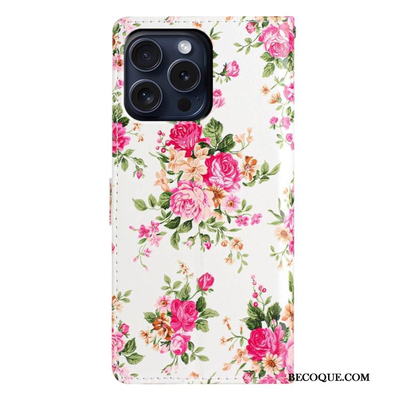Kotelot iPhone 16 Pro Max Puhelinkuoret Plum Blossom Lompakko Hihnalla