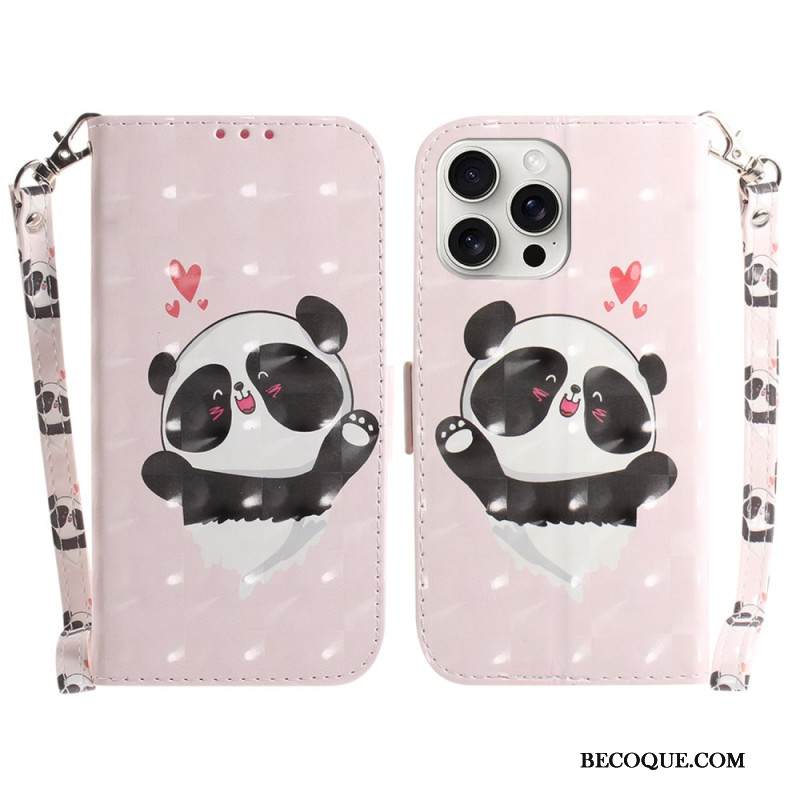 Kotelot iPhone 16 Pro Puhelinkuoret Panda Love Hihnalla