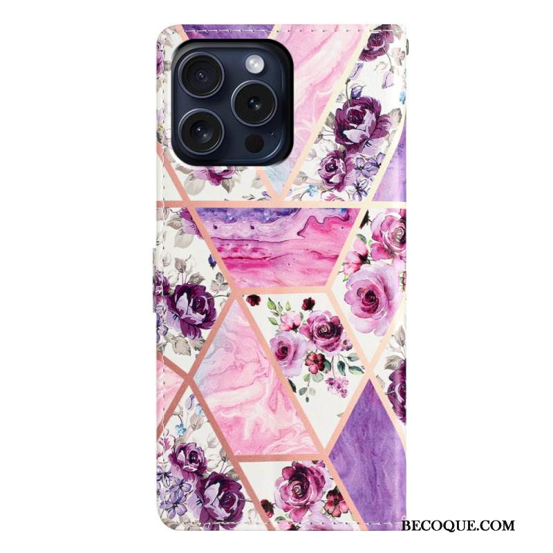 Kotelot iPhone 16 Pro Purppuraisia Kukkia Hihnalla