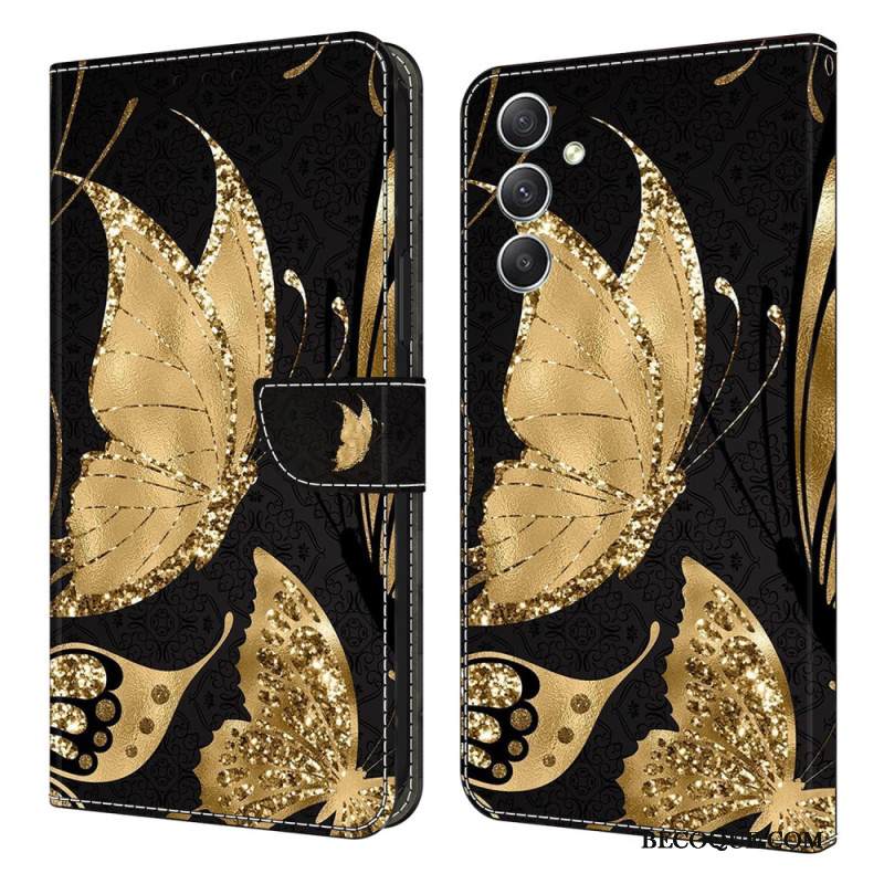 Kotelot Samsung Galaxy A15 Kultaiset Perhoset Hihnalla