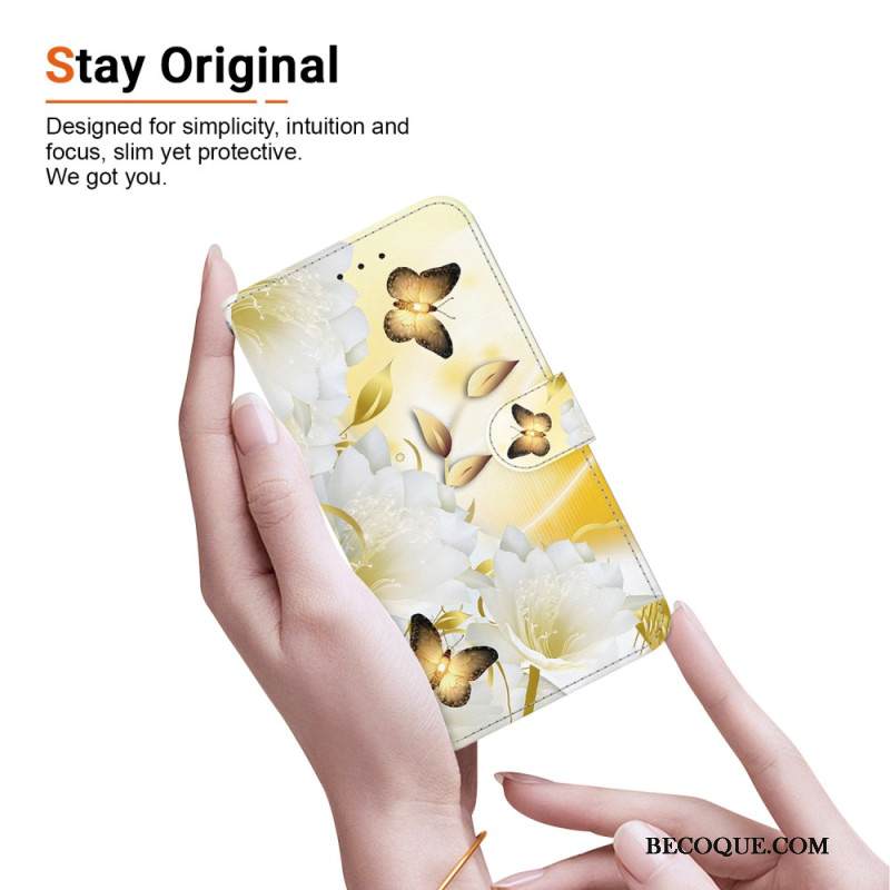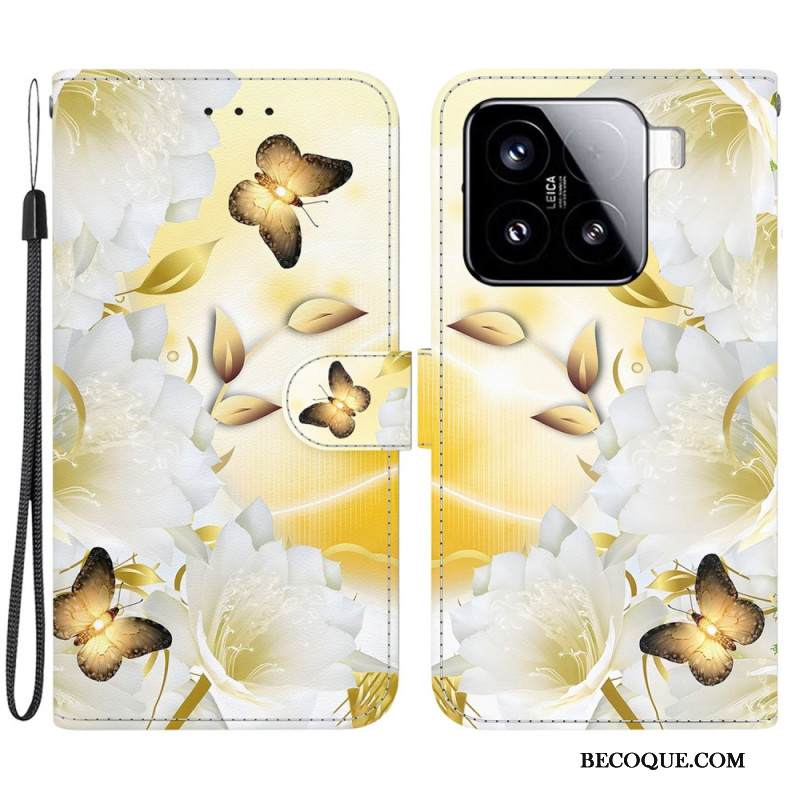 Kuoret Xiaomi 15 Kultaisia Perhosia Ja Valkoisia Kukkia