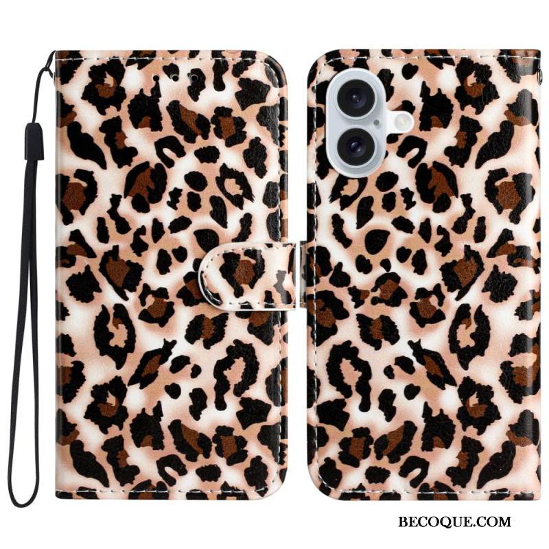 Kuoret iPhone 16 Plus Leopardikuvio Hihnalla