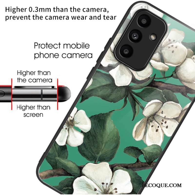 Kuori Samsung Galaxy A15 5g Karkaistu Lasi Valkoiset Kukat