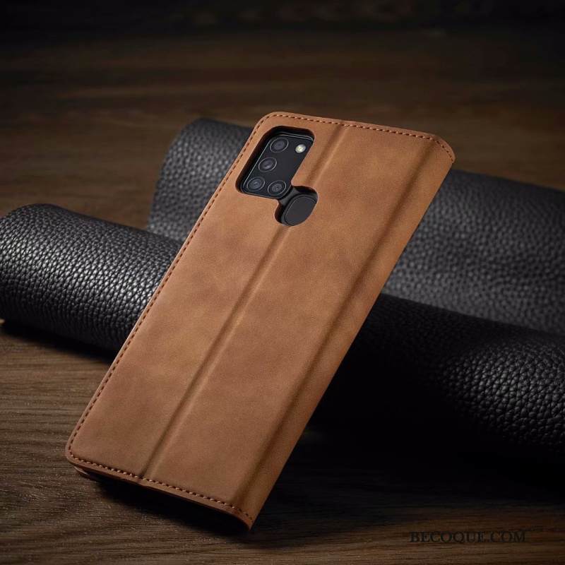 Kuori Samsung Galaxy A21s Kuoret Johdin Kulta, Kotelo Samsung Galaxy A21s Nahka Murtumaton Puhelimen Kuoret
