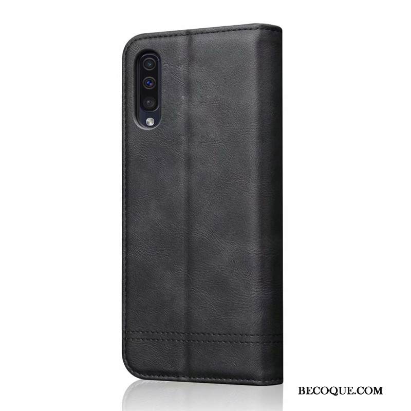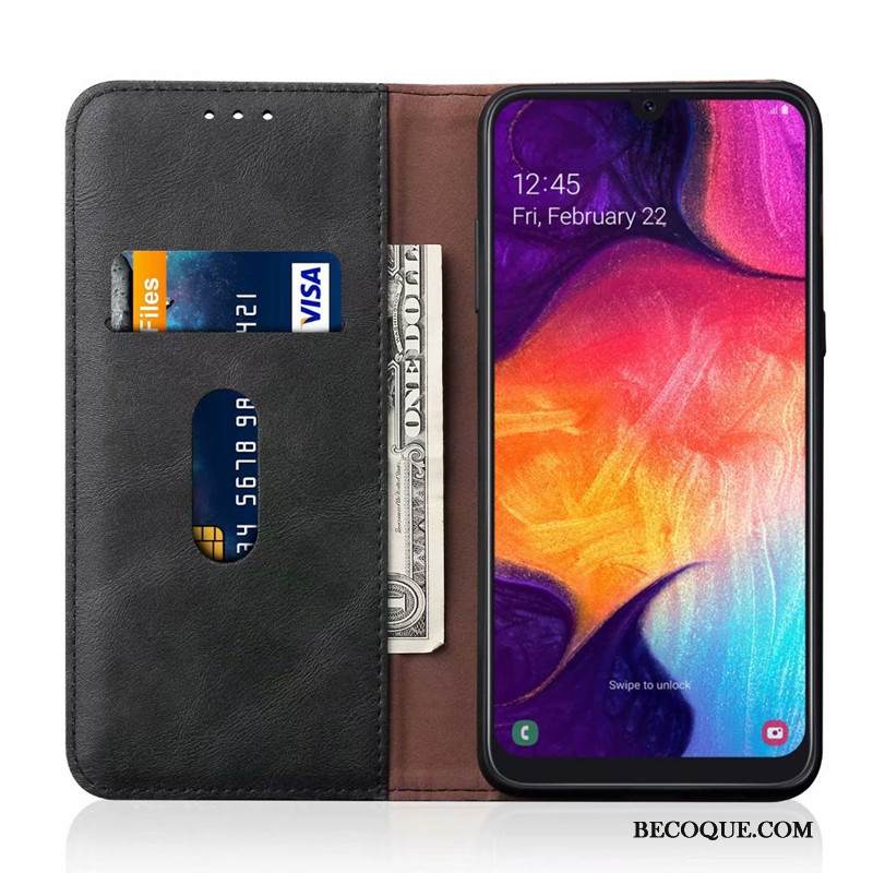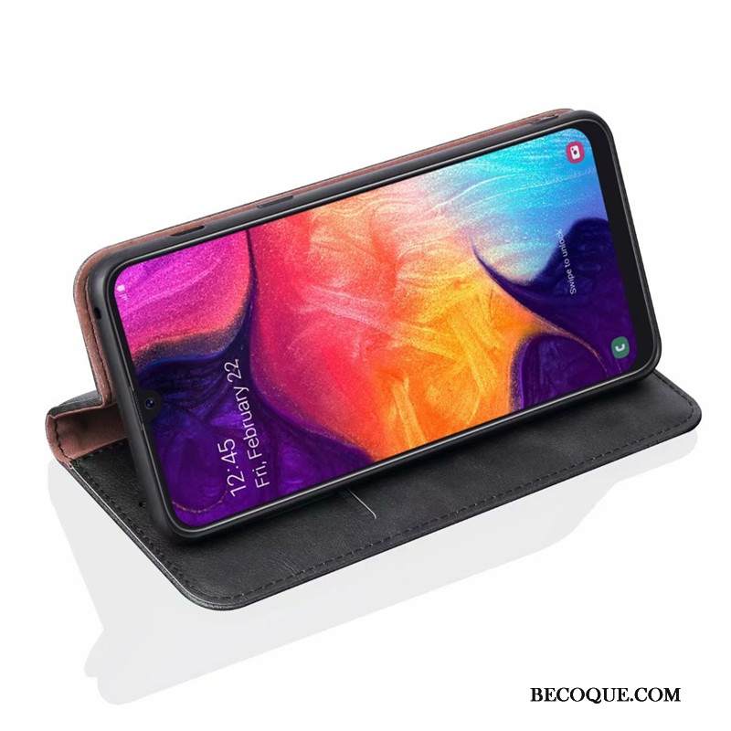 Kuori Samsung Galaxy A50 Nahka Murtumaton Musta, Kotelo Samsung Galaxy A50 Salkku Puhelimen Kuoret Kortti