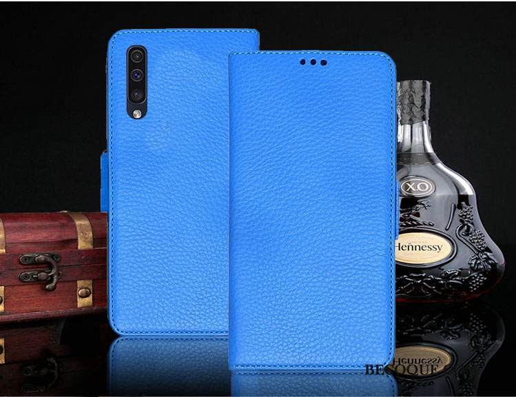 Kuori Samsung Galaxy A50 Nahka Sininen Puhelimen Kuoret, Kotelo Samsung Galaxy A50 Suojaus Kukkakuvio Murtumaton