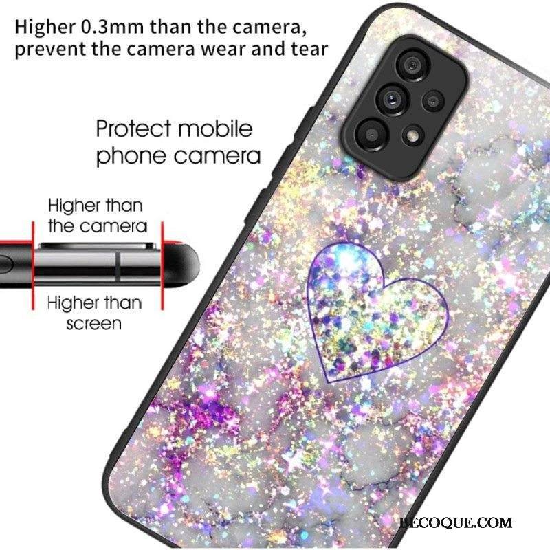 Kuori Samsung Galaxy A53 5G Glitter Heart Karkaistu Lasi