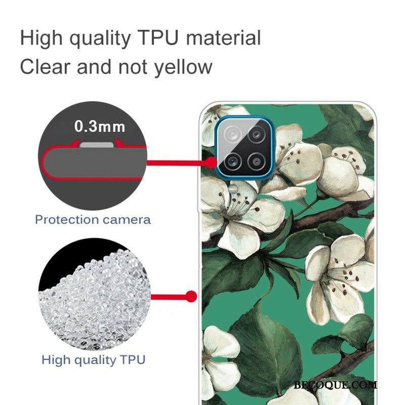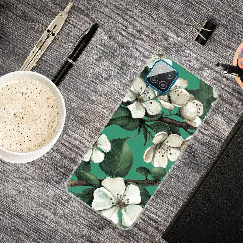 Kuori Samsung Galaxy M12 / A12 Maalattuja Valkoisia Kukkia