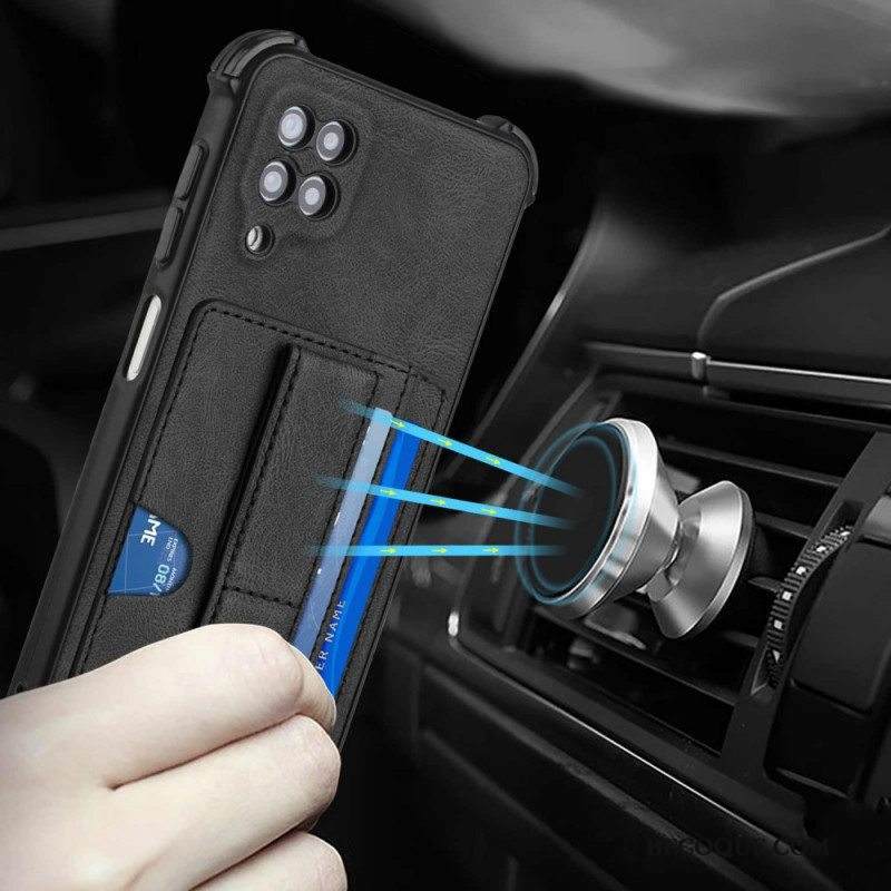 Kuori Samsung Galaxy M12 / A12 Nahkainen Teline Ja Korttiteline