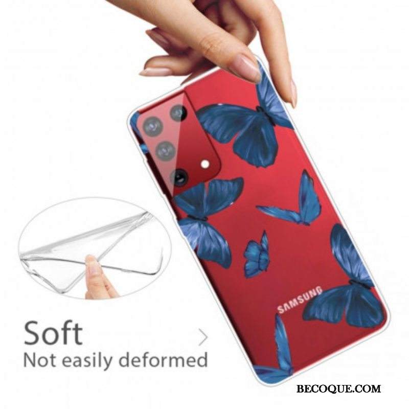Kuori Samsung Galaxy S21 Ultra 5G Fluoresoiva Sininen Perhonen