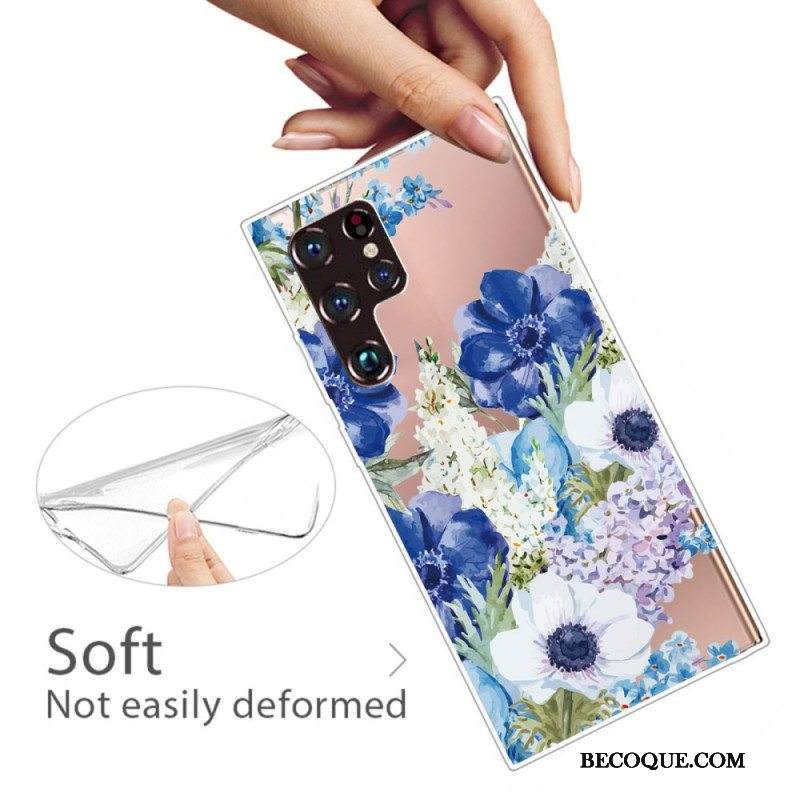 Kuori Samsung Galaxy S22 Ultra 5G Akvarelli Siniset Kukat