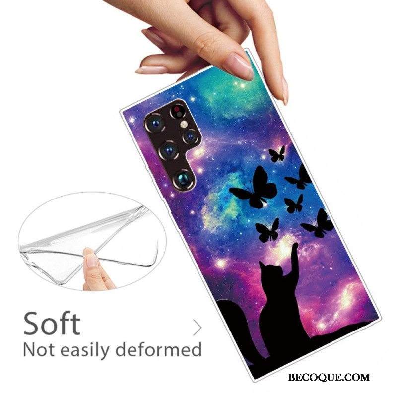 Kuori Samsung Galaxy S22 Ultra 5G Kissa Ja Perhosia Avaruudessa