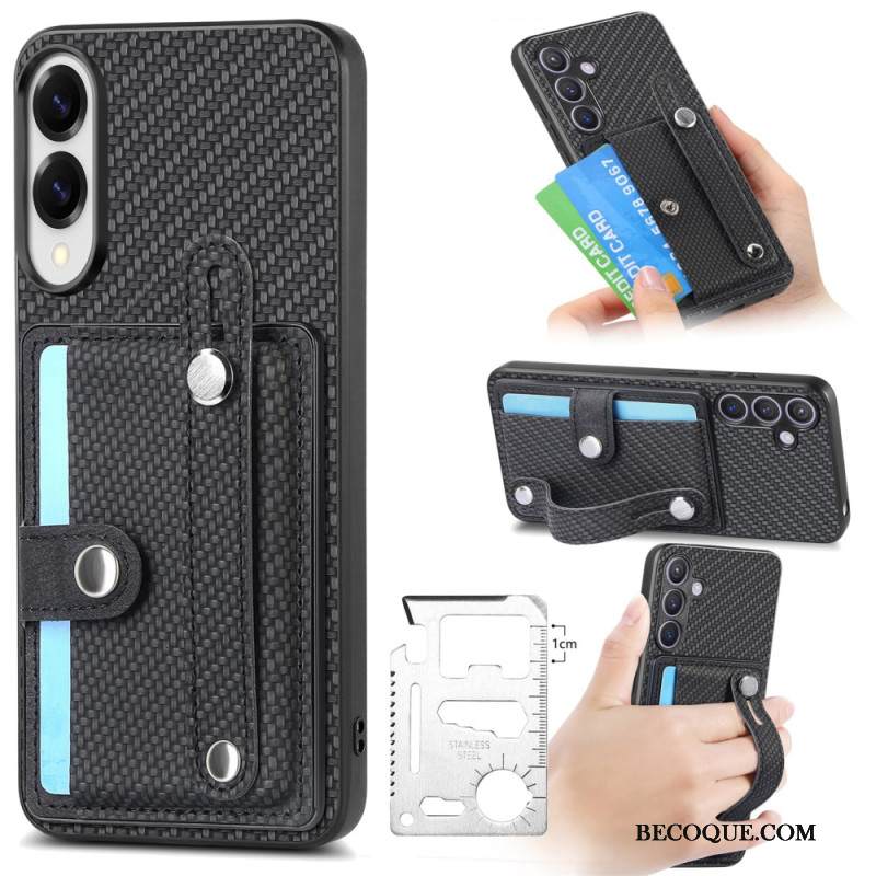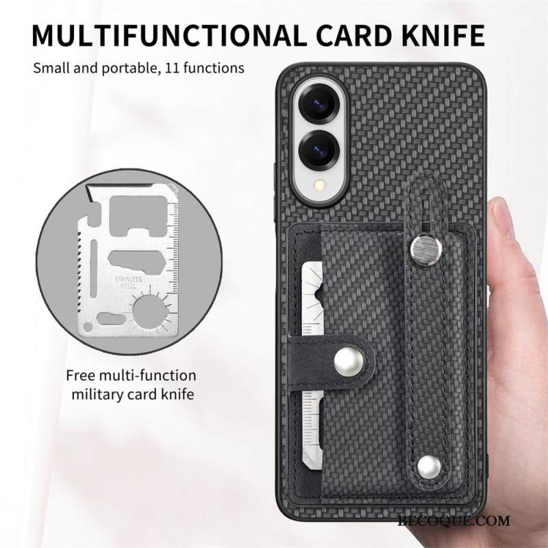Kuori Samsung Galaxy S25 5g Edge Hiilikuitu Korttikotelolla Ja Hihnalla Varustettu Jalusta Suojakuori