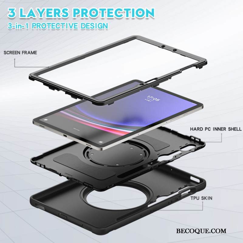Kuori Samsung Galaxy Tab S9 Iskunkestävä Tuella Ja Olkahihnalla