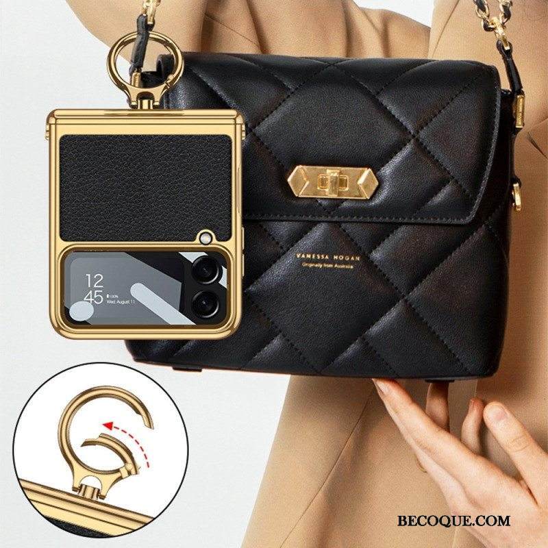 Kuori Samsung Galaxy Z Flip 4 Kotelot Flip Leather Style Gkk-karabiinilla