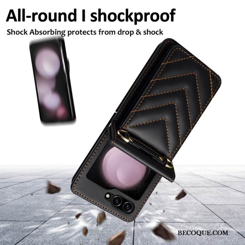 Kuori Samsung Galaxy Z Flip 6 Pehmustettu Korttiteline Ja Olkahihna
