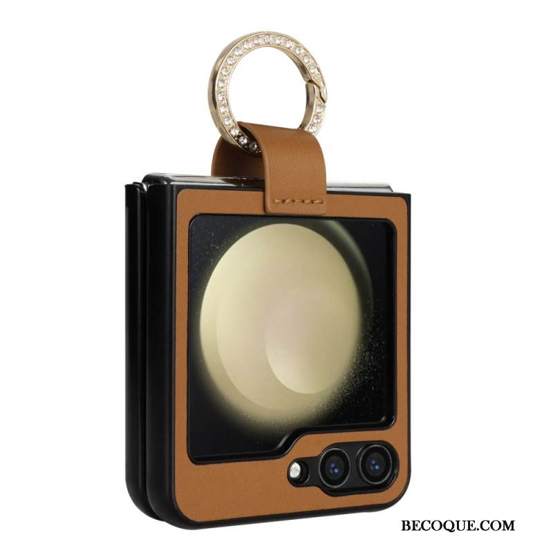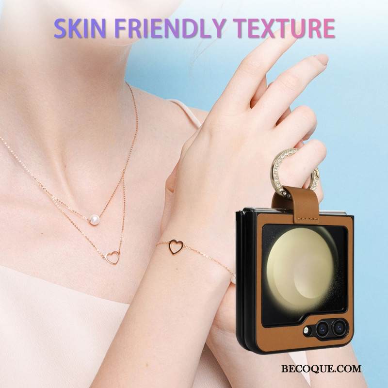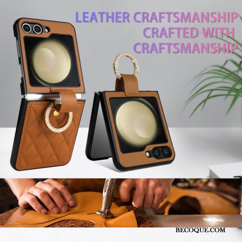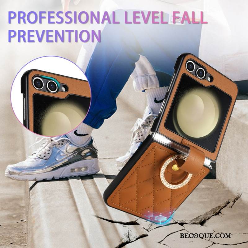 Kuori Samsung Galaxy Z Flip 7 Fe Mokkanahkaefekti Pyörivällä Jalustalla