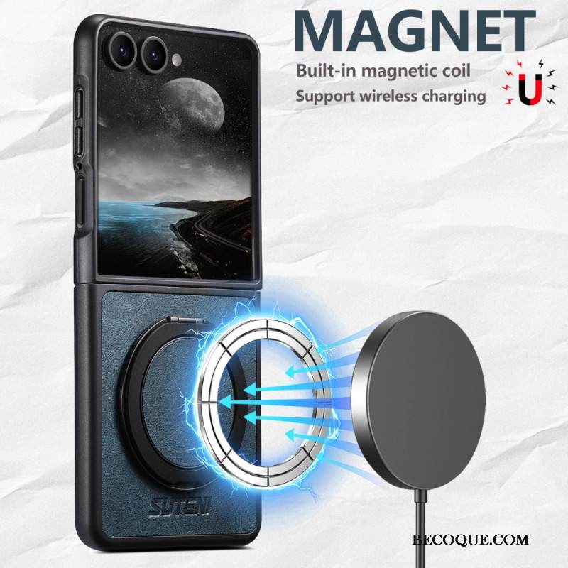 Kuori Samsung Galaxy Z Flip 7 Magsafe-yhteensopiva Nahkakuvioinen Suteni-sormuspidike Suojakuori