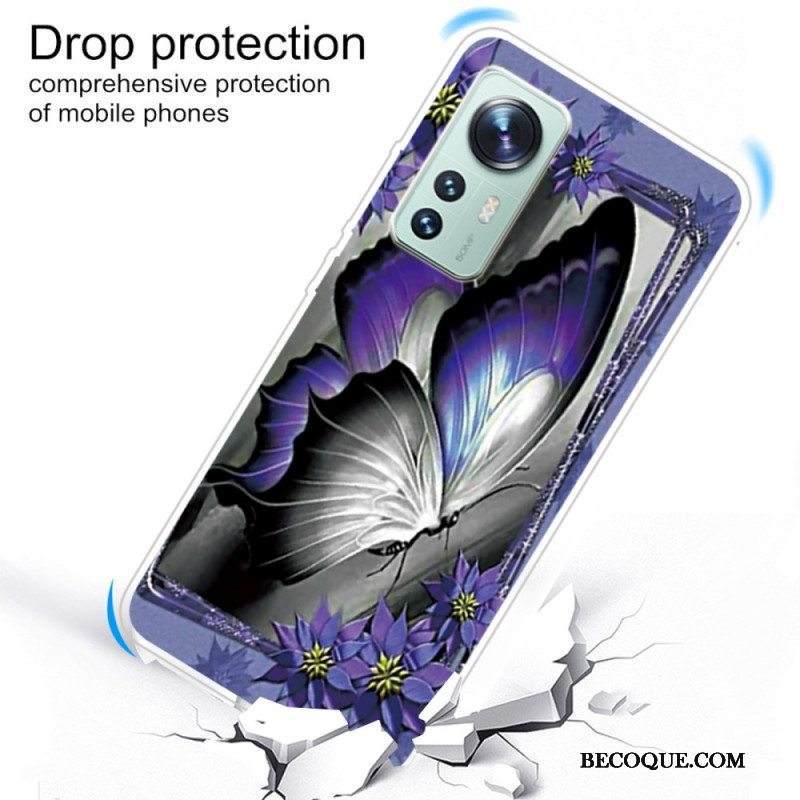 Kuori Xiaomi 12 / 12X Violetti Butterfly Silikoni