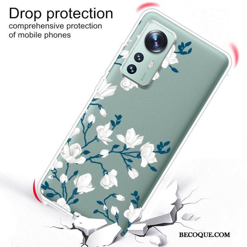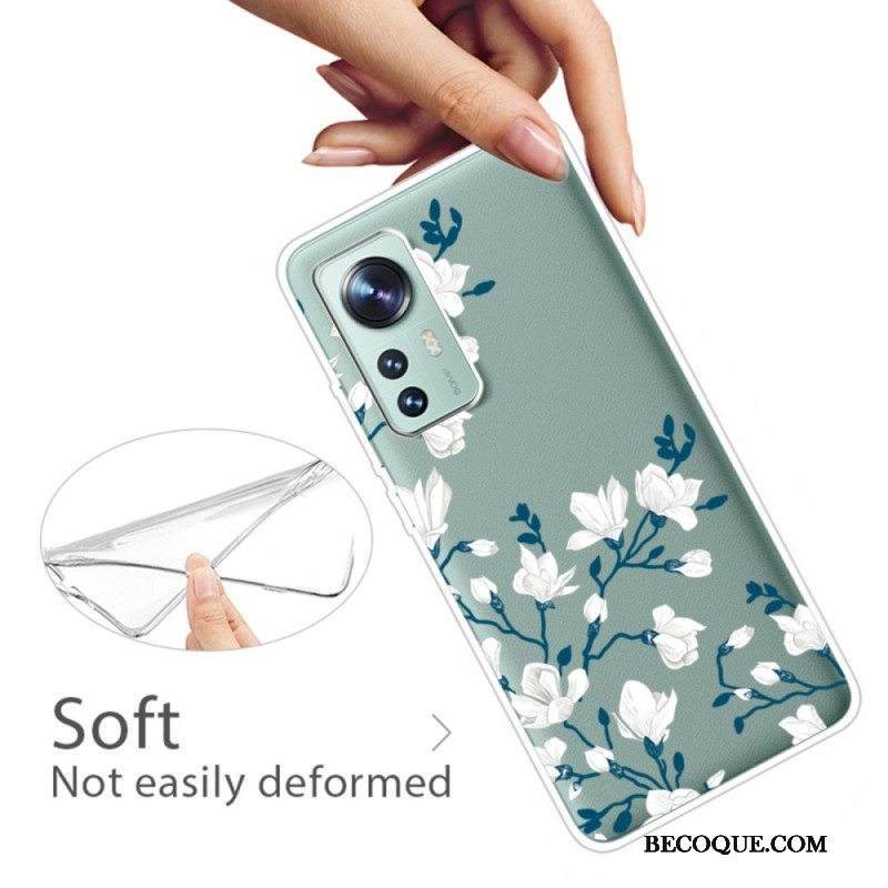 Kuori Xiaomi 12 Pro Silikonin Valkoiset Kukat