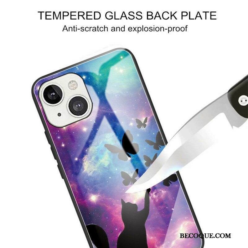 Kuori iPhone 13 Mini Karkaistu Lasi Kissa Ja Perhosia Avaruudessa