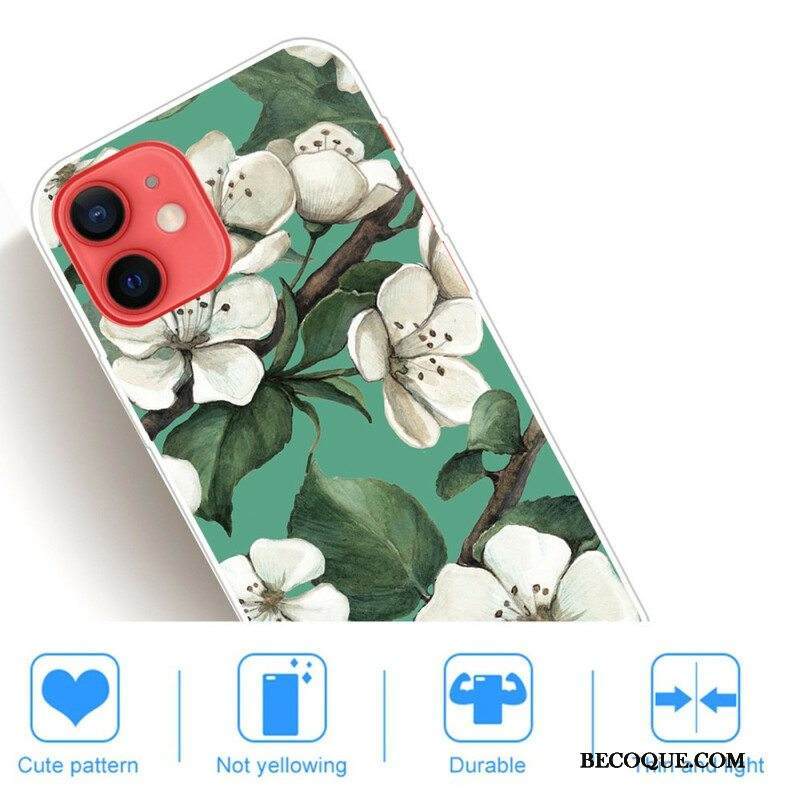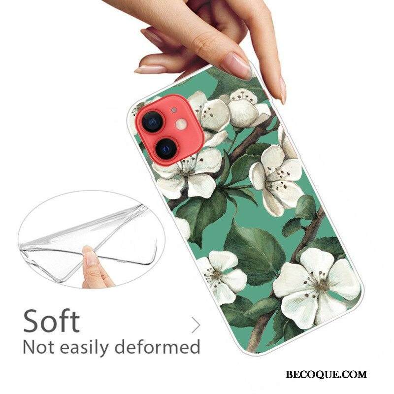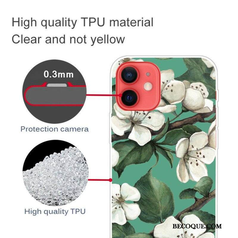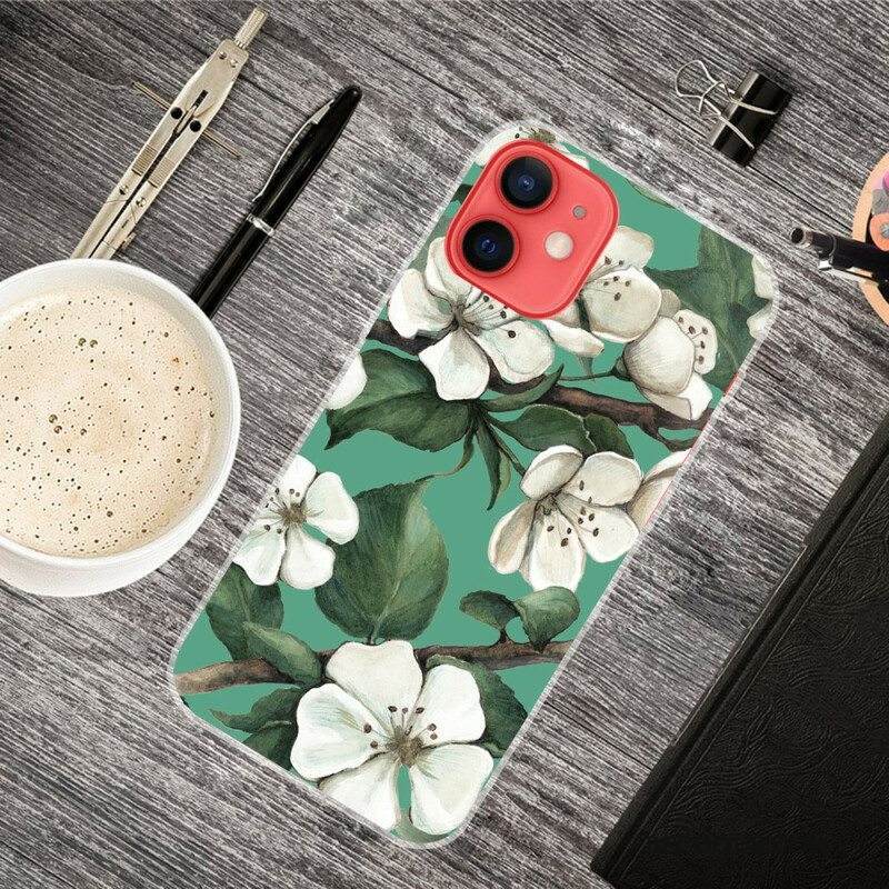 Kuori iPhone 13 Mini Maalattuja Valkoisia Kukkia