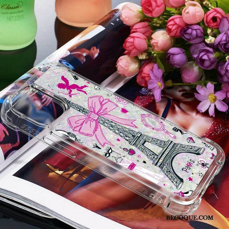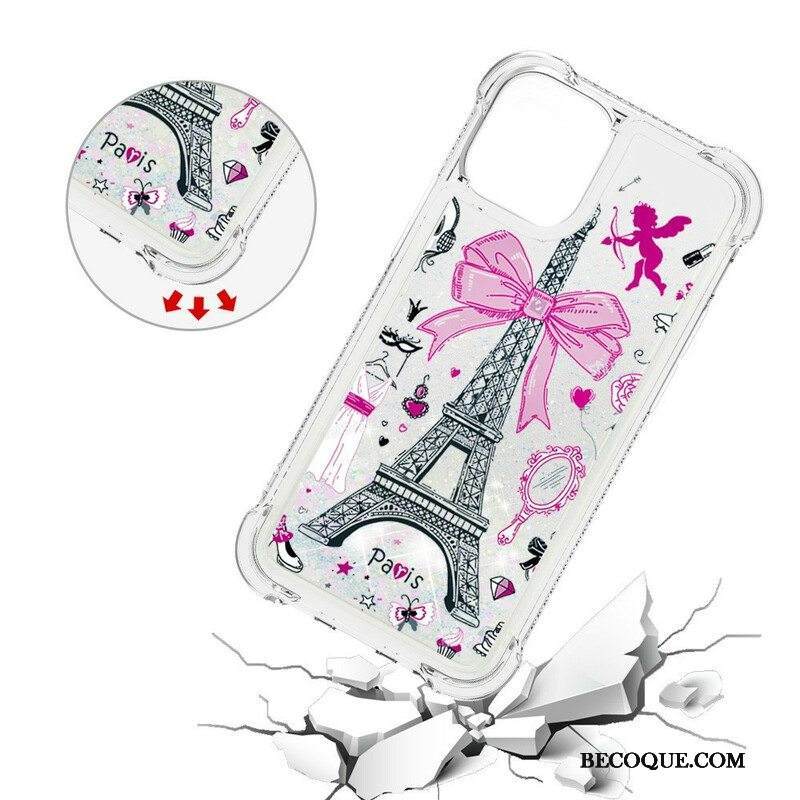 Kuori iPhone 13 Pro Max Eiffel-tornin Paljetteja