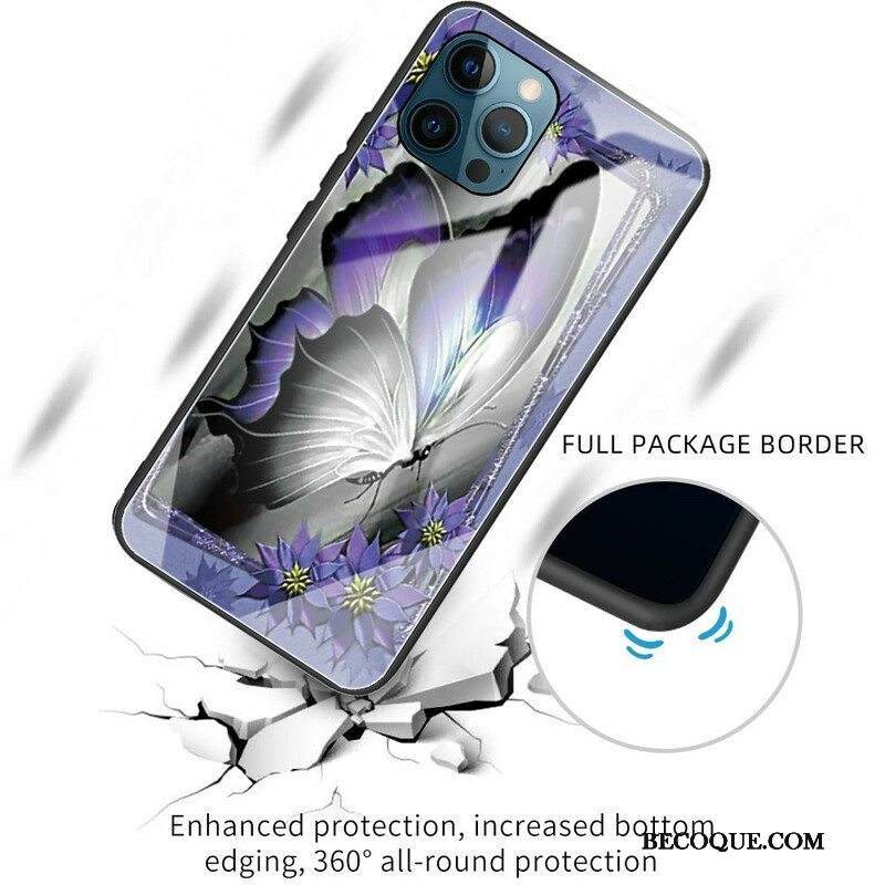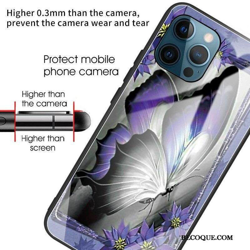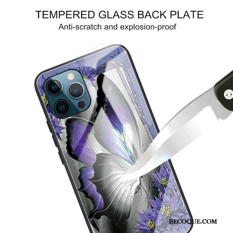 Kuori iPhone 13 Pro Purple Butterfly Karkaistu Lasi