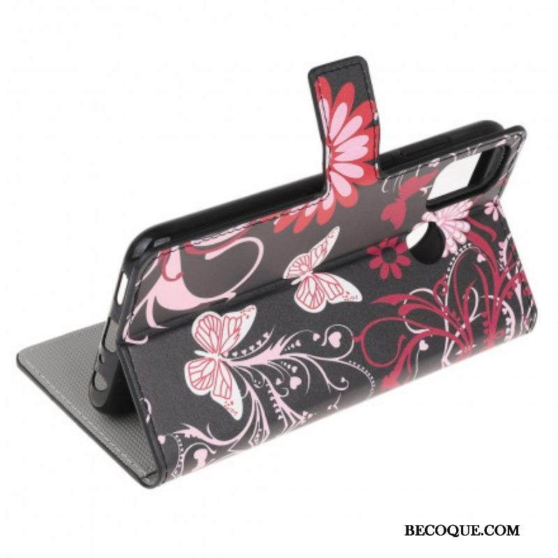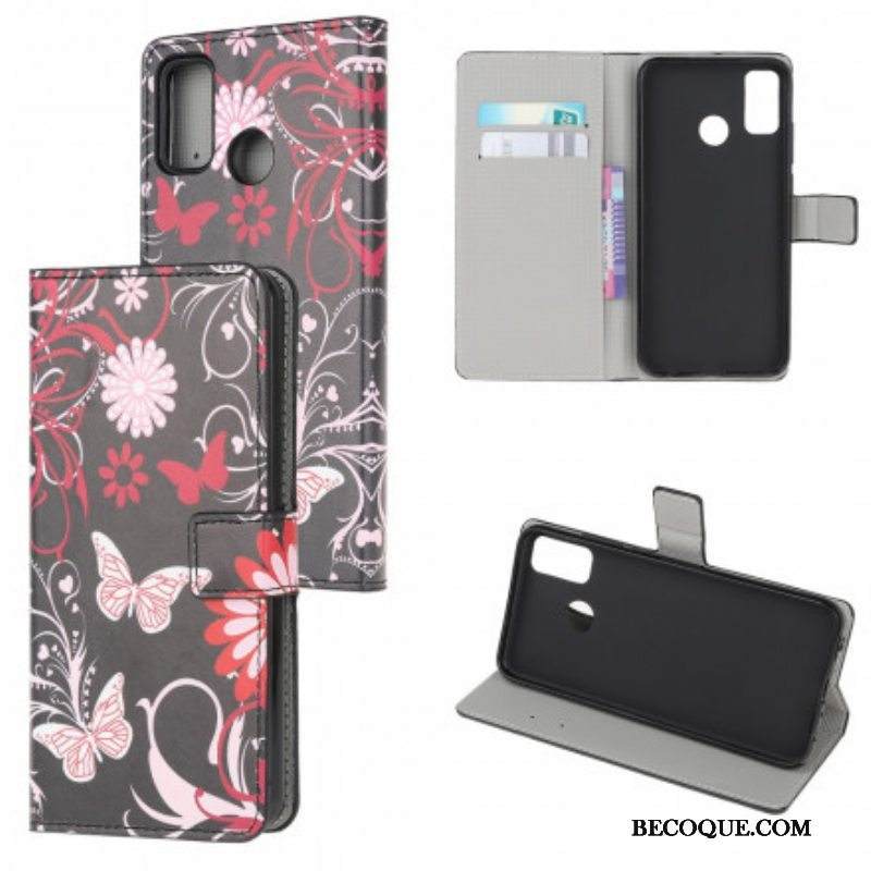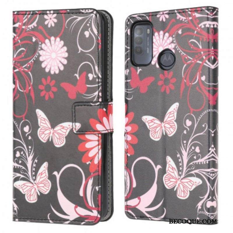 Nahkakotelo Moto G50 Perhosia Ja Kukkia