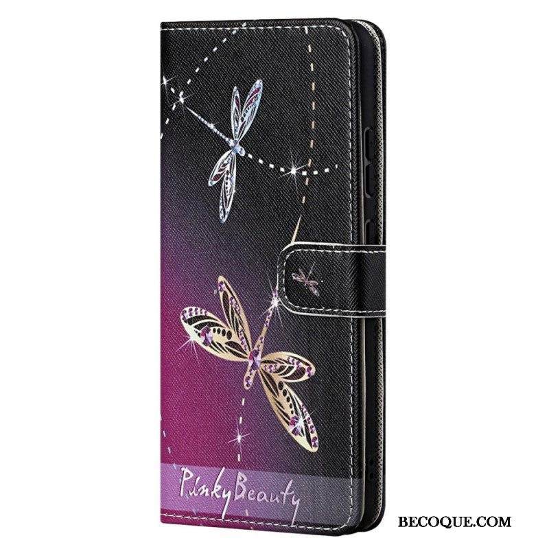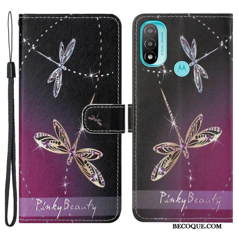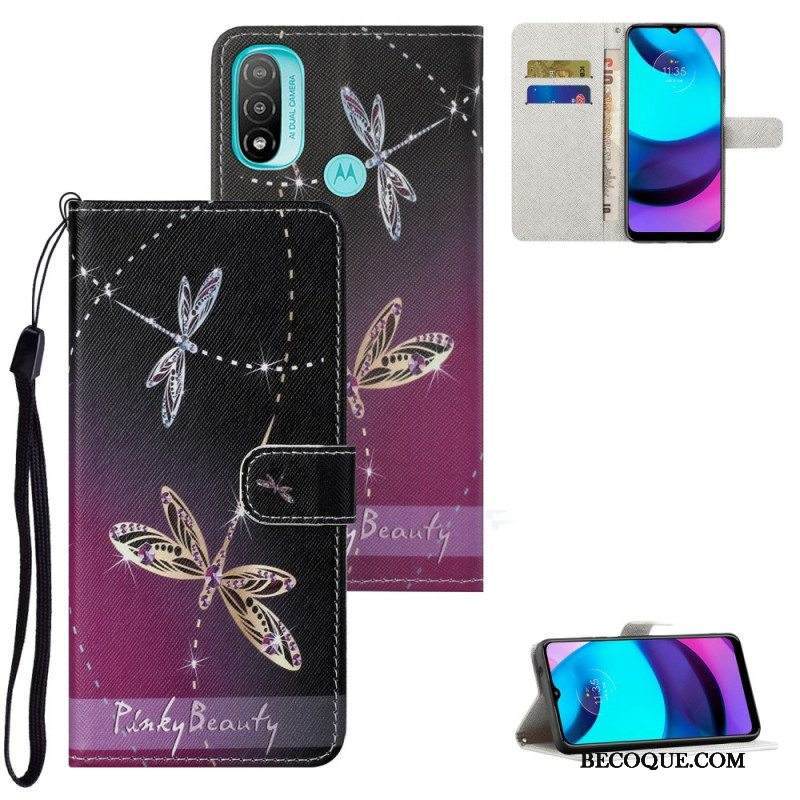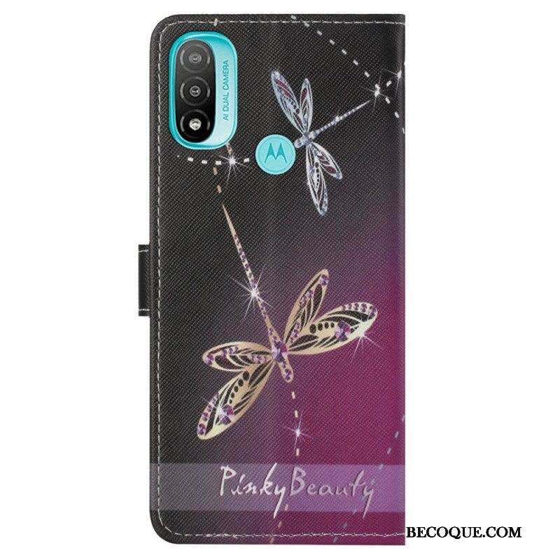 Nahkakotelo Moto G71 5G Suojaketju Kuori Strappy Dragonflies